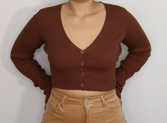 V-Neck Cropped Cardigan Sweater