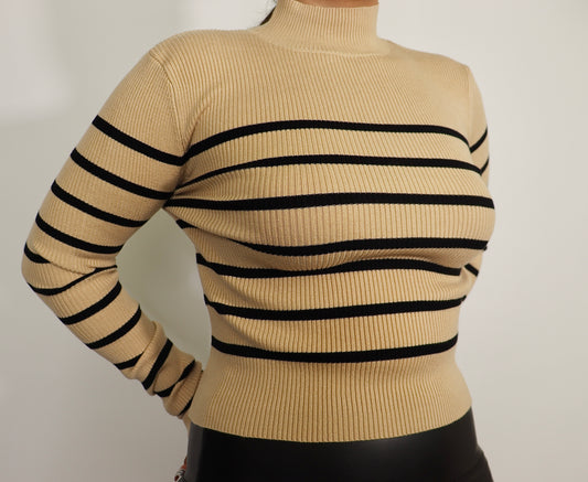 Modern Striped Mock-Neck Long Sleeve