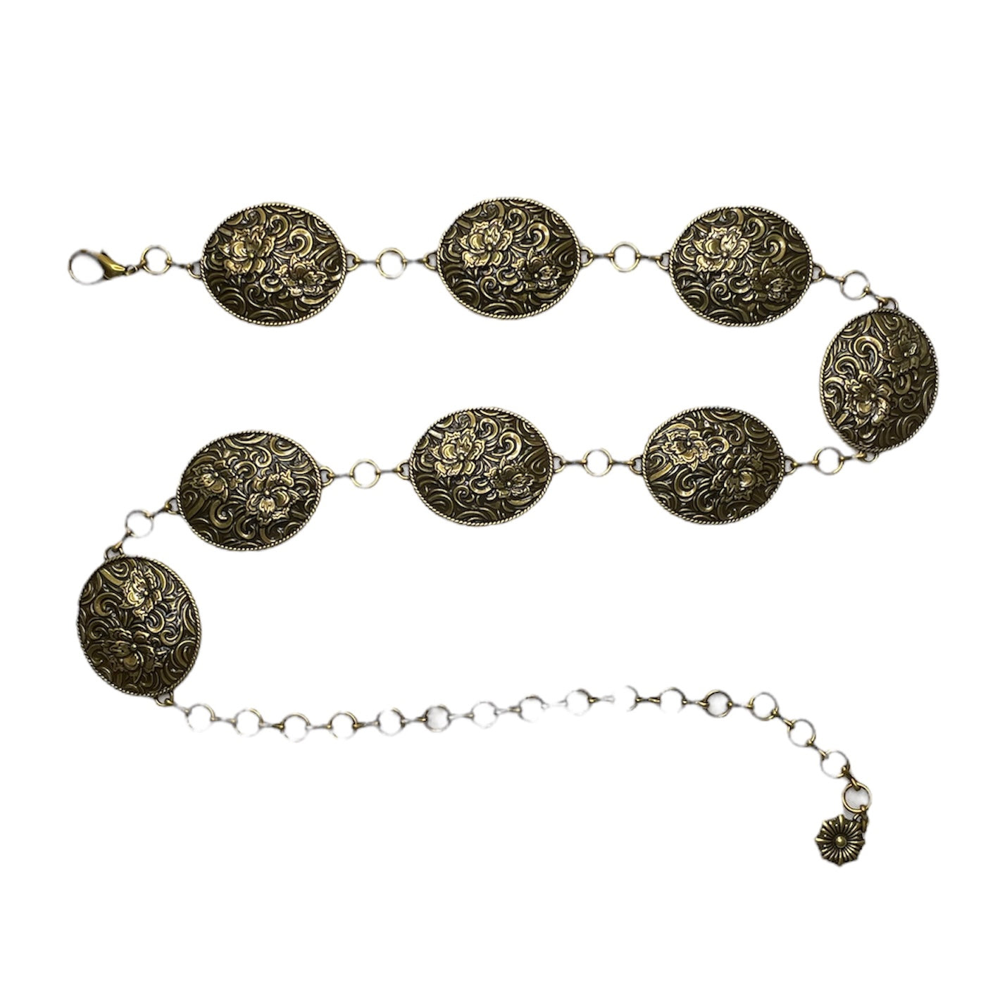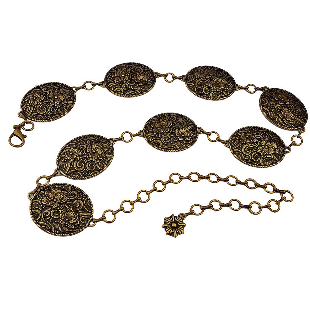 Western-Inspired Floral Oval Concho Chain Belt